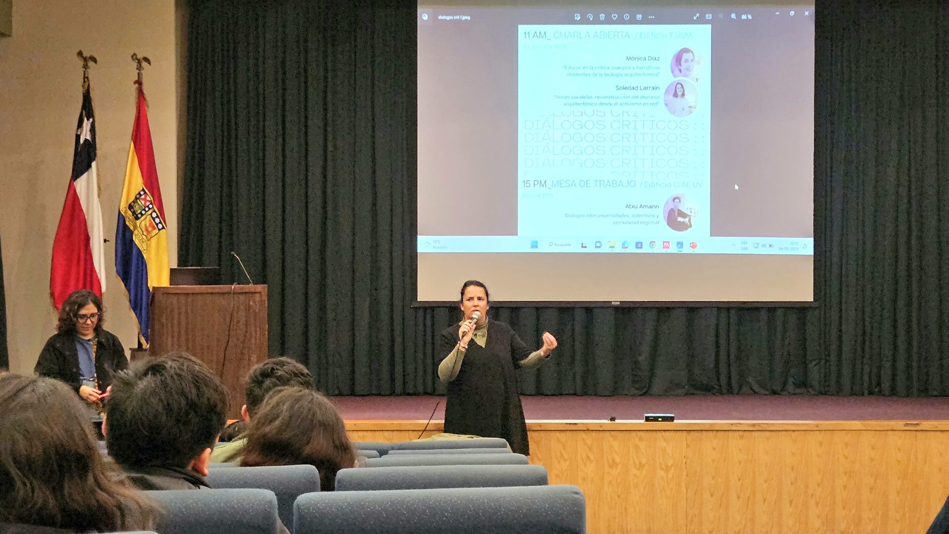 Toda una mañana de reflexión interdisciplinaria en torno a experiencias en arquitectura y educación se desarrolló en el evento «Diálogos Críticos: Género, Arquitectura, Educación», realizado en el Campus Casa Central Valparaíso de la USM y que contó con las presentaciones de las arquitectas Mónica Díaz y Soledad Larraín.